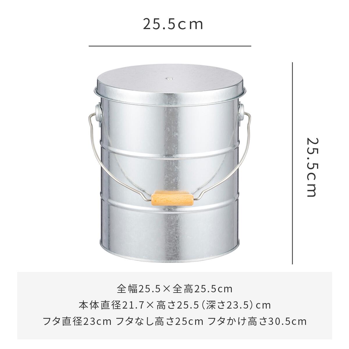 本体直径21.7×高さ25.5(深さ23.5)cm フタ直径23cm フタなし高さ25cm フタかけ高さ30.5cm |
