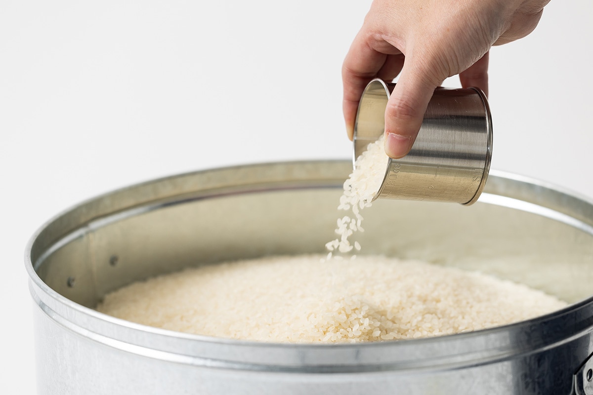 そんな想いから、計量カップをお付けしています。ステンレス製で、お米を量りやすいかたち。